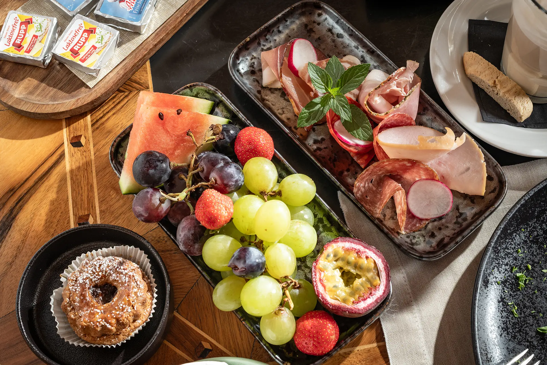 In our vitality corner, you will find everything for a healthy start. There are also local cheeses, fine meats and sausages from our in-house butcher, fresh yogurt, and a colorful muesli buffet.